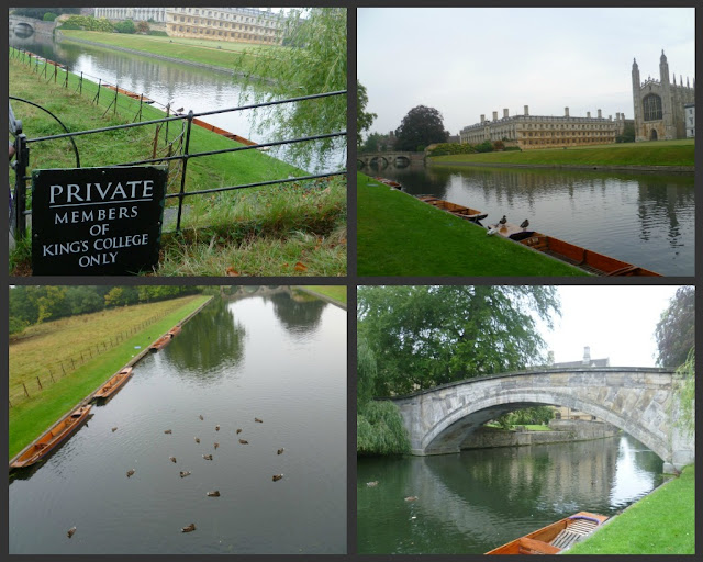 | 1) path to get to the Kings College punts 2) looking across the Cam at the Kings College Chapel 3) Kings College Punts + many ducks 4) bridge on the left hand side of Kings College |